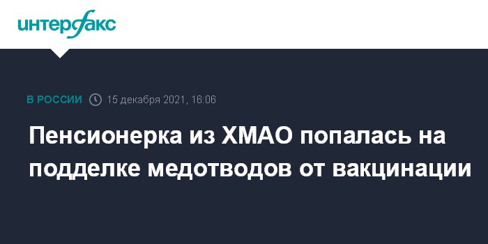 Москва. 15 декабря. INTERFAX.RU - Пожилая жительница Сургута (Ханты-Мансийский автономный округ - Югра) подозревается в изготовлении справок о медицинском отводе от вакцинации против коронавируса. Об этом сообщает пресс-служба УМВД России по городу.