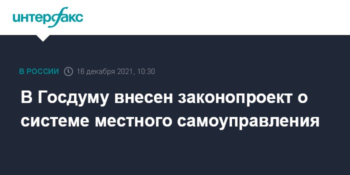 В Госдуму внесен законопроект о системе местного самоуправления