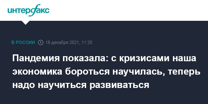 Пандемия показала: с кризисами наша экономика бороться научилась, теперь надо научиться развиваться
