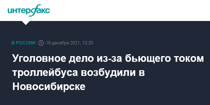 Москва. 16 декабря. INTERFAX.RU - Следователи завели уголовное дело по факту травмирования током пассажирки троллейбуса в Новосибирске, сообщает в четверг СУ СКР по региону.
