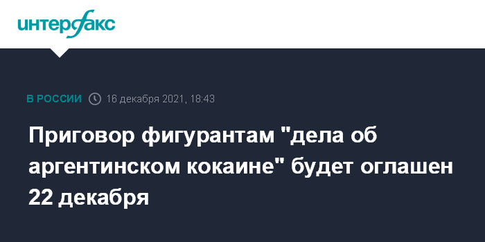 Приговор фигурантам "дела об аргентинском кокаине" будет оглашен 22 декабря