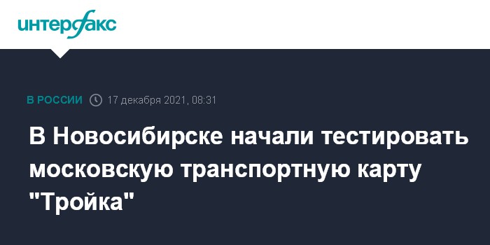 Москва. 17 декабря. INTERFAX.RU - На одном из маршрутов наземного транспорта в Новосибирске протестируют московскую транспортную карту "Тройка", сообщил заммэра столицы по вопросам транспорта Максим Ликсутов.