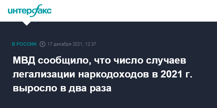 МВД сообщило, что число случаев легализации наркодоходов в 2021 г. выросло в два раза