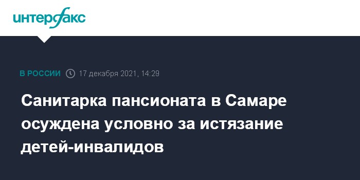 Москва. 17 декабря. INTERFAX.RU - Суд признал санитарку самарского пансионата для детей-инвалидов виновной в истязании трех воспитанников, сообщается на сайте СКР.