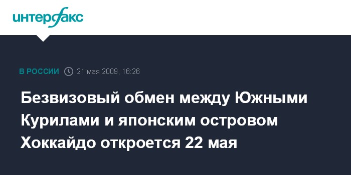 Безвизовый обмен между Южными Курилами и японским островом Хоккайдо откроется 22 мая