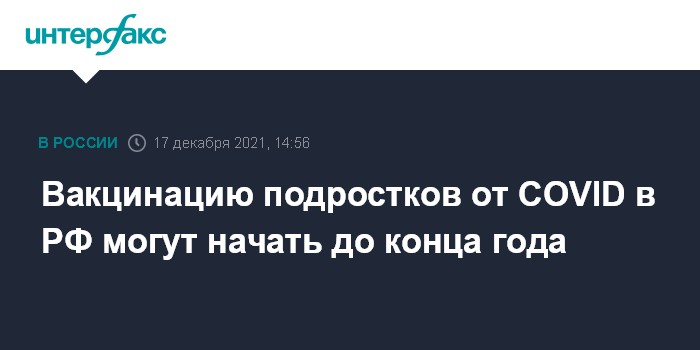 Москва. 17 декабря. INTERFAX.RU - Вакцинация подростков от 12 до 17 лет может начаться до конца текущего года, сообщил глава Минздрава Михаил Мурашко.