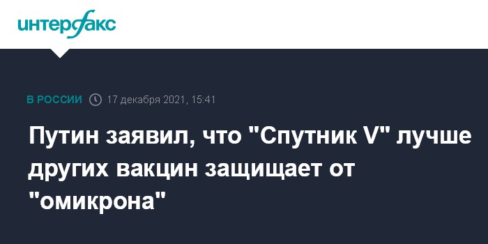 "Кстати говоря, наш "Спутник V"... работает хорошо, и порою даже эффективнее в борьбе с "омикроном", чем другие, - сказал он. - В течение нескольких ближайших дней специалисты дадут этому окончательную оценку".