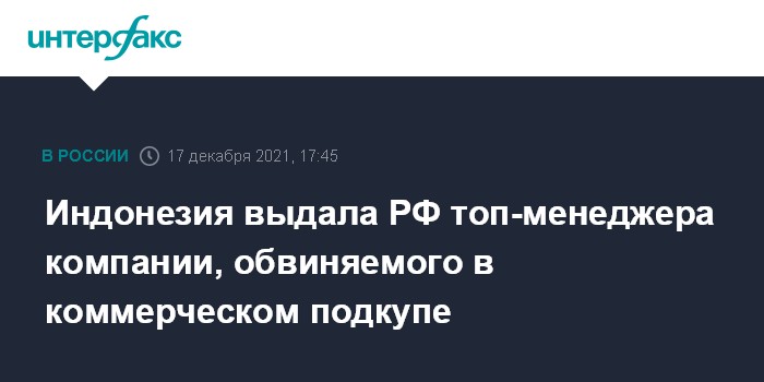 Индонезия выдала РФ топ-менеджера компании, обвиняемого в коммерческом подкупе