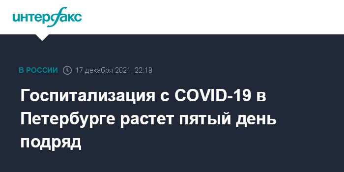 Москва. 17 декабря. INTERFAX.RU - В Петербурге за сутки больницы приняли 448 пациентов с коронавирусной инфекцией, это максимальный показатель для этой недели, говорится в эпидемиологической справке, распространенной пресс-службой администрации губернатора.