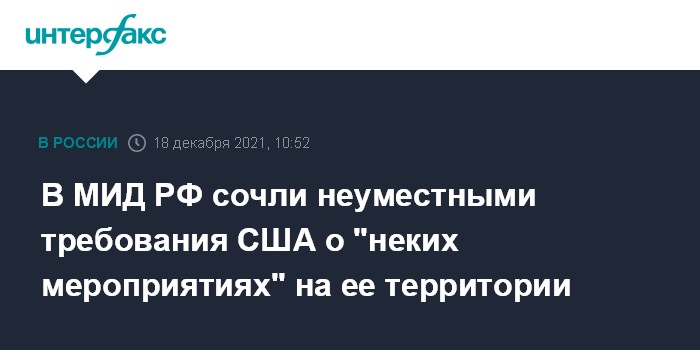 В МИД РФ сочли неуместными требования США о "неких мероприятиях" на ее территории