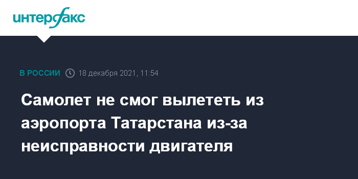 "18 декабря от дежурного линейного отдела полиции в Набережных Челнах поступило сообщение о том что в аэропорту Бегишево задерживается рейс 6248 авиакомпании "Россия" сообщением "Бегишево - Шереметьево (Москва)" по технической причине (не запускается левый двигатель)", - рассказал собеседник агентства.