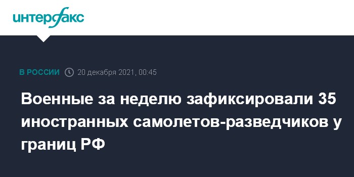 Разведку у российских границ на прошедшей неделе вели 35 иностранных самолетов и один беспилотник, свидетельствуют данные Минобороны РФ, которые опубликованы в понедельник в ведомственной газете "Красная звезда".