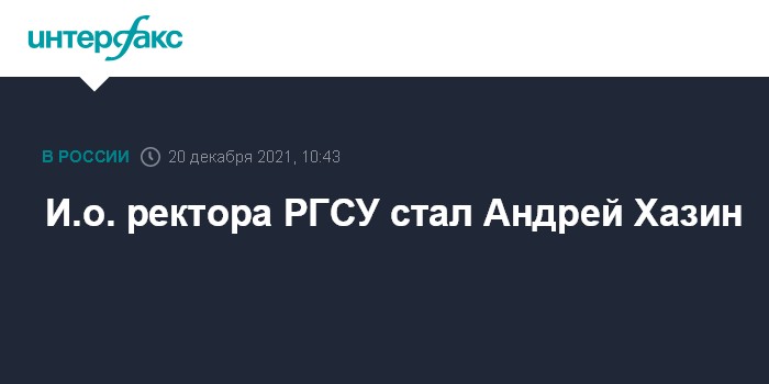 Москва. 20 декабря. INTERFAX.RU - Исполняющим обязанности ректора Российского государственного социального университета (РГСУ) с 21 декабря назначен Андрей Хазин, который с августа 2020 года был советником президента Российской академии художеств Зураба Церетели. Об этом сообщили в пресс-службе Минобрнауки.