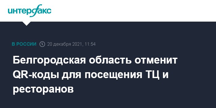 С 8 по 22 ноября QR-коды были введены в Белгородской области как обязательные во всех предприятиях, кроме магазинов с товарами первой необходимости. Такое же требование распространялось на торговые и торгово-развлекательные центры, гипермаркеты, магазины непродовольственных товаров. Это ограничение продлили до 6 декабря, затем до 20 декабря.