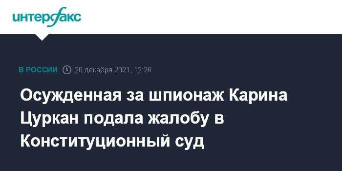 Москва. 20 декабря. INTERFAX.RU - Бывшая топ-менеджер компании "Интер РАО" Карина Цуркан обратилась в Конституционный суд РФ с жалобой, в которой она оспаривает положения закона, связанные с признанием допустимыми доказательствами свидетельских показаний без указания источника информации из-за запрета на его разглашение - такие показания, как она настаивает, были положены в основу ее приговора.
