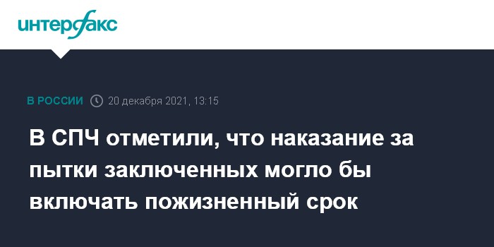 В СПЧ отметили, что наказание за пытки заключенных могло бы включать пожизненный срок
