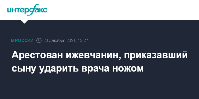 Арестован ижевчанин, приказавший сыну ударить врача ножом