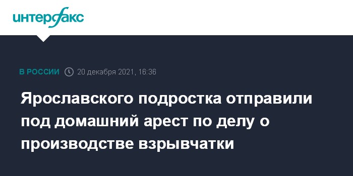 Ярославского подростка отправили под домашний арест по делу о производстве взрывчатки