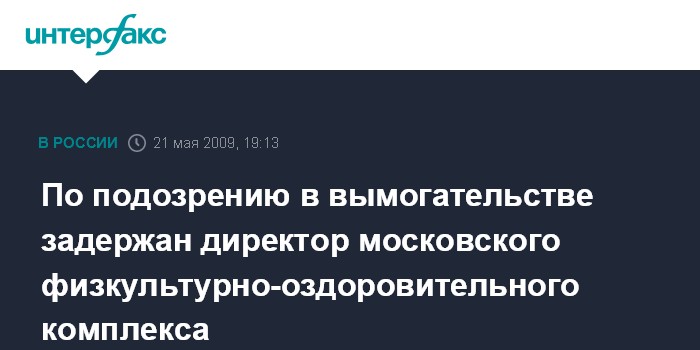 По подозрению в вымогательстве задержан директор московского физкультурно-оздоровительного комплекса