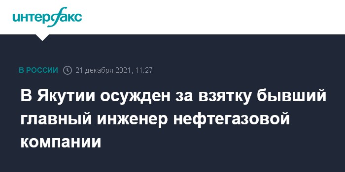 В Якутии осужден за взятку бывший главный инженер нефтегазовой компании