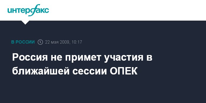 Москва. 21 мая. INTERFAX.RU – Российская делегация не поедет на заседание ближайшей сессии ОПЕК, сообщил журналистам министр энергетики РФ Сергей Шматко в Хабаровске.