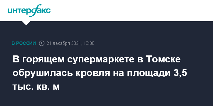 В горящем супермаркете в Томске обрушилась кровля на площади 3,5 тыс. кв. м