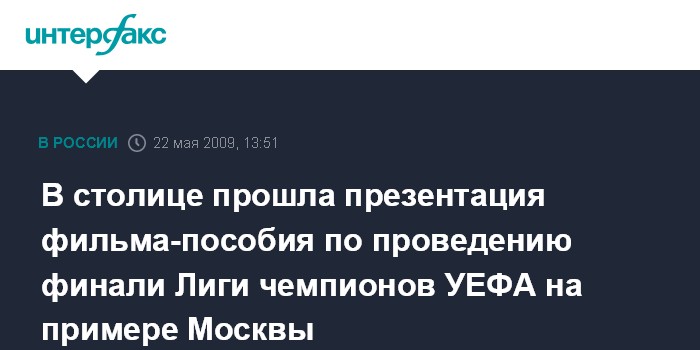 Москва. 22 мая. INTERFAX.RU - В столичной мэрии в пятницу прошла презентация документального фильма-пособия по проведению финали Лиги чемпионов УЕФА на примере Москвы.