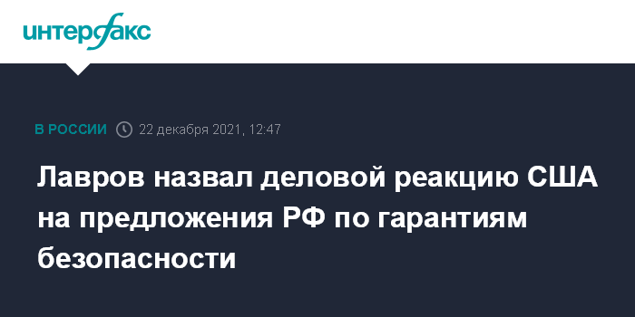 Москва. 22 декабря. INTERFAX.RU - В Москве не считают, что США игнорируют предложения России по гарантиям безопасности, заявил в среду глава МИД РФ Сергей Лавров.
