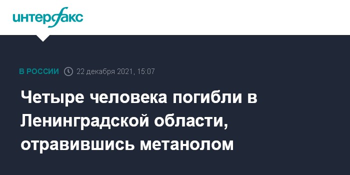 Москва. 22 декабря. INTERFAX.RU - Несколько человек погибли в Лодейнопольском районе Ленинградской области в результате отравления метиловым спиртом, сообщил "Интерфаксу" в среду информированный источник.