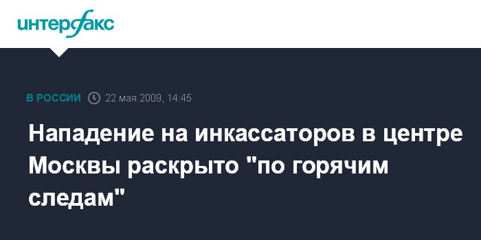 Москва. 22 мая. INTERFAX.RU - Вооруженное нападение на инкассаторов в центре Москвы раскрыто "по горячим следам", заявил "Интерфаксу" в пятницу руководитель следственного управления СКП РФ по Москве Анатолий Багмет.