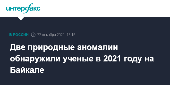 Москва. 22 декабря. INTERFAX.RU - Сотрудники Лимнологического института Сибирского отделения РАН (ЛИН СО РАН) обнаружили две природные аномалии при обследовании озера Байкал в 2021 году, сообщил в среду директор учреждения Андрей Федотов.