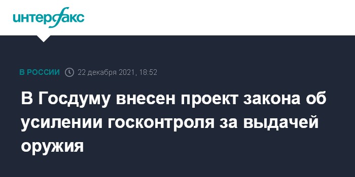 Москва. 22 декабря. INTERFAX.RU - В Госдуму в среду внесен законопроект, предусматривающий более жёсткий госконтроль за выдачей огнестрельного оружия, заявил председатель думского комитета по информационной политике Александр Хинштейн.