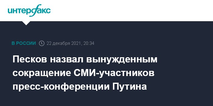 Песков назвал вынужденным сокращение СМИ-участников пресс-конференции Путина