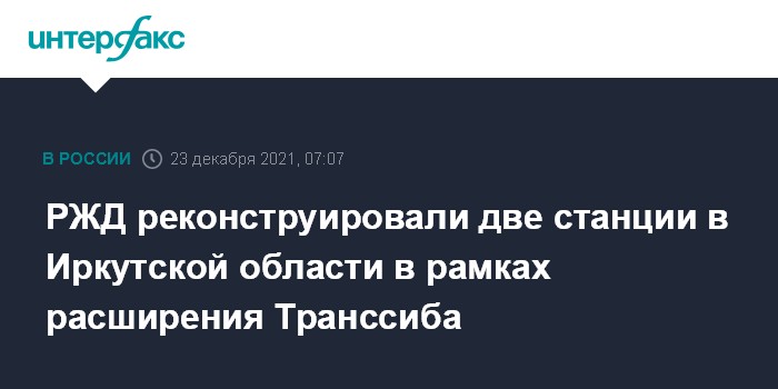 Москва. 23 декабря. INTERFAX.RU - Восточно-Сибирская железная дорога (ВСЖД, филиал РЖД) в рамках программы по развитию Транссиба завершила реконструкцию станций Мегет и Касьяновка в Иркутской области, сообщает ВСЖД.
