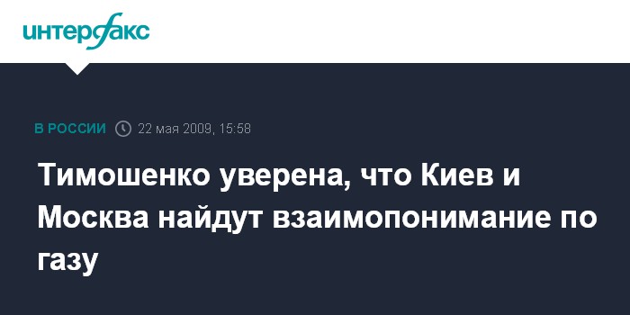 Астана. 22 мая. INTERFAX.RU - Украина и Россия найдут взаимоприемлемое решение в вопросе поставки и транзита российского газа, в частности, в вопросе закачки его в подземные хранилища газа, считает украинский премьер Юлия Тимошенко. Об этом она заявила в начале встречи с главой правительства России Владимиром Путиным в Астане в пятницу.