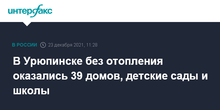 Москва. 23 декабря. INTERFAX.RU - В Урюпинске из-за аварии на трубопроводе без отопления оказались 39 многоквартирных домов, или около 1700 человек, сообщили в мэрии города.