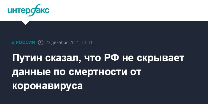 Москва. 23 декабря. INTERFAX.RU - Россия не скрывает данные по смертности от коронавируса, заявил президент РФ Владимир Путин.