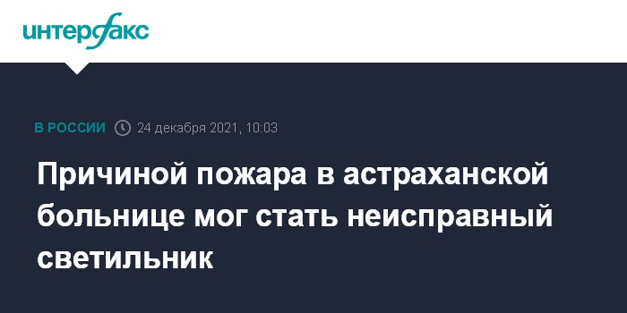 Москва. 24 декабря. INTERFAX.RU - Возгорание в астраханской ковид-больнице вызвала неисправность в системе освещения, сообщил "Интерфаксу" источник в клинике.