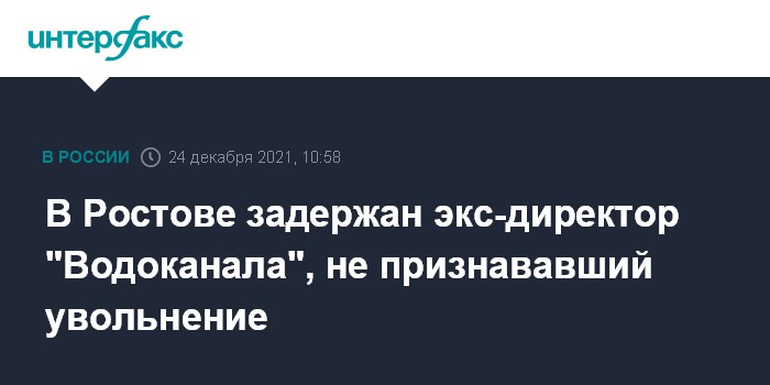 Москва. 24 декабря. INTERFAX.RU - В Ростове задержан бывший директор местного "Водоканала" Дмитрий Кубрак, который больше месяца провел в одном из административном зданий предприятия, забаррикадировавшись и оспаривая свое увольнение.