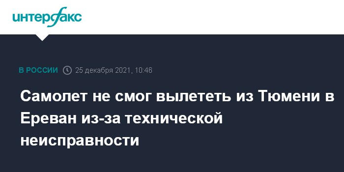 Самолет не смог вылететь из Тюмени в Ереван из-за технической неисправности