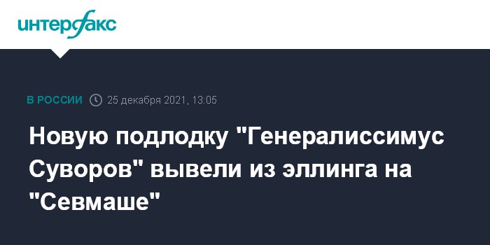 "Эта церемония, повторяющаяся из года в год, всякий раз вызывает яркие эмоции создателей корабля и тех, кто оказывается на таком событии впервые. Осторожно, со скоростью три метра в минуту, специальная транспортная система перемещает огромный, 170 метров в длину, подводный крейсер в сторону плавдока "Сухона". С его помощью "Генералиссимус Суворов" и примет крещение в водах Белого моря", - пишет издание.
