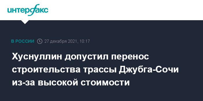 Москва. 25 декабря. INTERFAX.RU - Стоимость строительства трассы Джубга-Сочи оценивается в сумму свыше 1,4 трлн рублей, если ее не получится снизить, то проект будет отложен, сообщил вице-премьер РФ Марат Хуснуллин в интервью "Ведомостям".