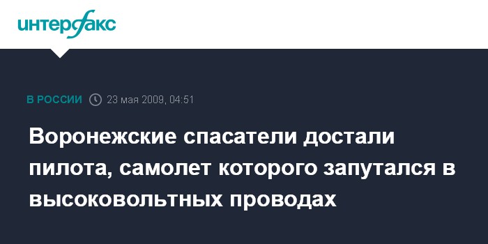 Воронеж. 23 мая. ИНТЕРФАКС - В Воронежской области спасли пилота легкомоторного самолета, который в пятницу вечером при проведении сельскохозяйственных работ запутался в высоковольтной линии электропередач.