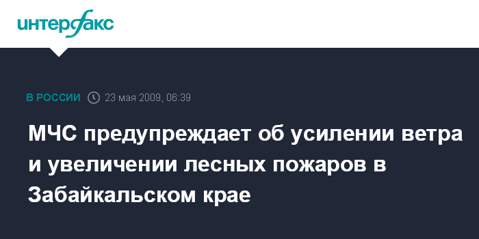 Чита. 23 мая. ИНТЕРФАКС-СИБИРЬ - В Забайкальском крае ожидается усиление ветра до 25-30 метров в секунду, что приведет к появлению пыльных бурь в западных, центральных и южных районах Забайкалья, сообщает пресс-служба ГУ МЧС по Забайкальскому краю.