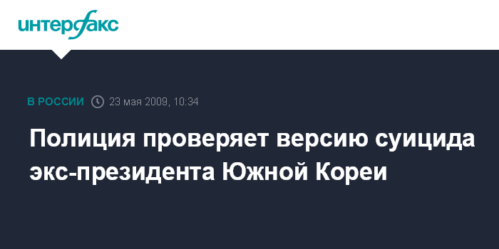 Лондон. 23 мая. ИНТЕРФАКС - Погиб бывший президент Южной Кореи Но Му Хен, сообщает британская телерадиовещательная корпорация Би-би-си со ссылкой на южнокорейские СМИ.