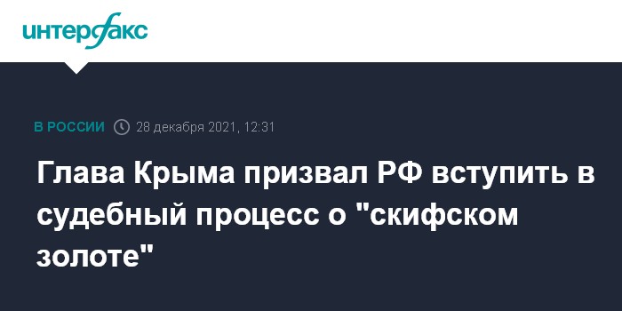 Москва. 28 декабря. INTERFAX.RU - Россия как государство должна стать стороной судебного процесса между крымскими музеями и Украиной о принадлежности "скифского золота", считает глава республики Сергей Аксенов.