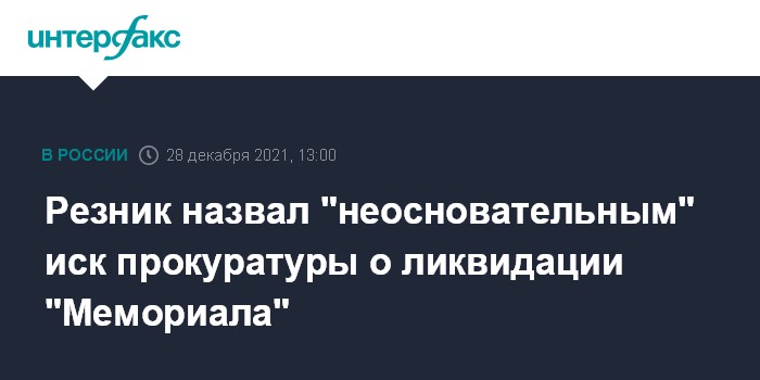 Москва. 28 декабря. INTERFAX.RU - Адвокат Генри Резник, представляющий общество "Мемориал" (признан НКО-иноагентом), заявил, что считает безосновательным иск Генпрокуратуры о ликвидации организации, передал корреспондент "Интерфакса".
