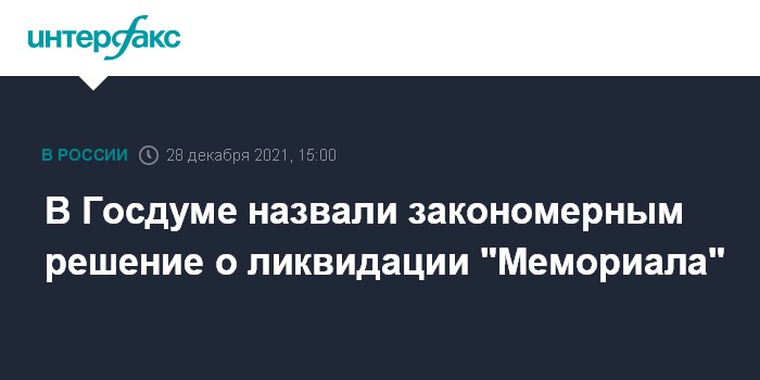 Москва. 28 декабря. INTERFAX.RU - Решение Верховного суда о ликвидации международного историко-просветительского общества "Мемориал" (признано в России НКО-иноагентом) закономерно, заявил председатель думского комитета по безопасности и противодействию коррупции Василий Пискарев.