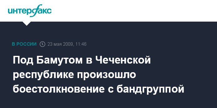 Москва. 23 мая. INTERFAX.RU - Боестолкновение с группой боевиков численностью от пяти до 10 человек произошло в первой половине дня в субботу в районе населенного пункта Бамут в Чеченской республике, сообщили агентству "Интерфакс-Юг" в штабе Объединенной группировки войск.