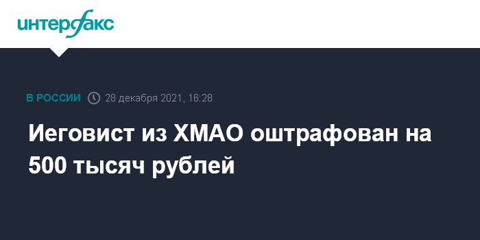 Иеговист из ХМАО оштрафован на 500 тысяч рублей